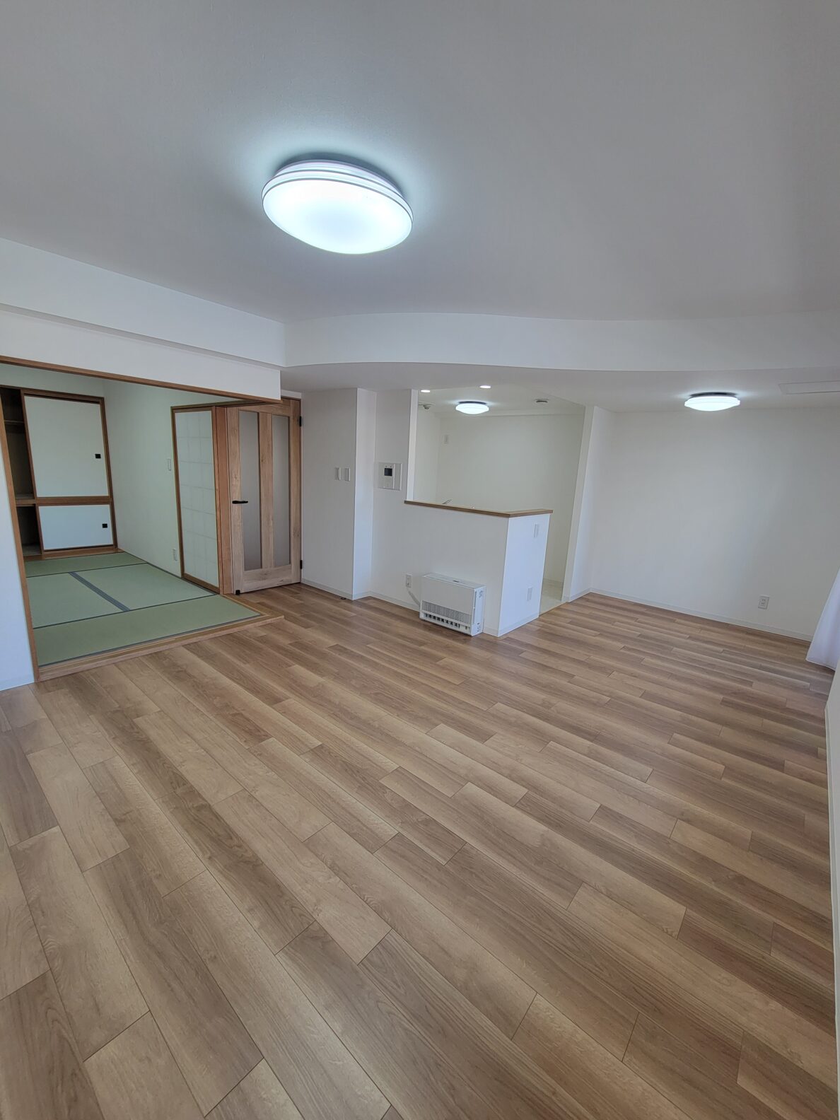 東向きのリビングで爽やかな朝を過ごせそうな3LDKのお部屋は、リビングの天井が緩やかな曲線を描いているのが個性的!オープンキッチンからリビングや和室が見えるので、小さいお子さんがいても安心の設計。キッチンとパウダールームが繋がっている2WAY動線も、家事の効率を上げてくれます!