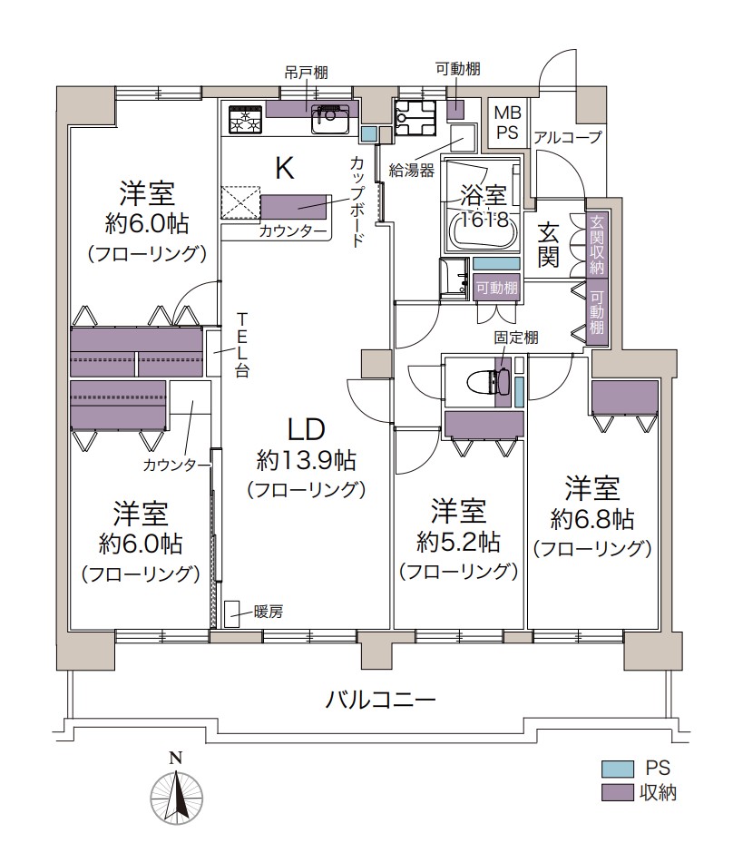 お部屋はゆったりとした4LDK。4LDKがこの価格で手に入るのはかなりお得感あり!全体的に収納が多めなので、ファミリーも余裕をもって暮らせます。