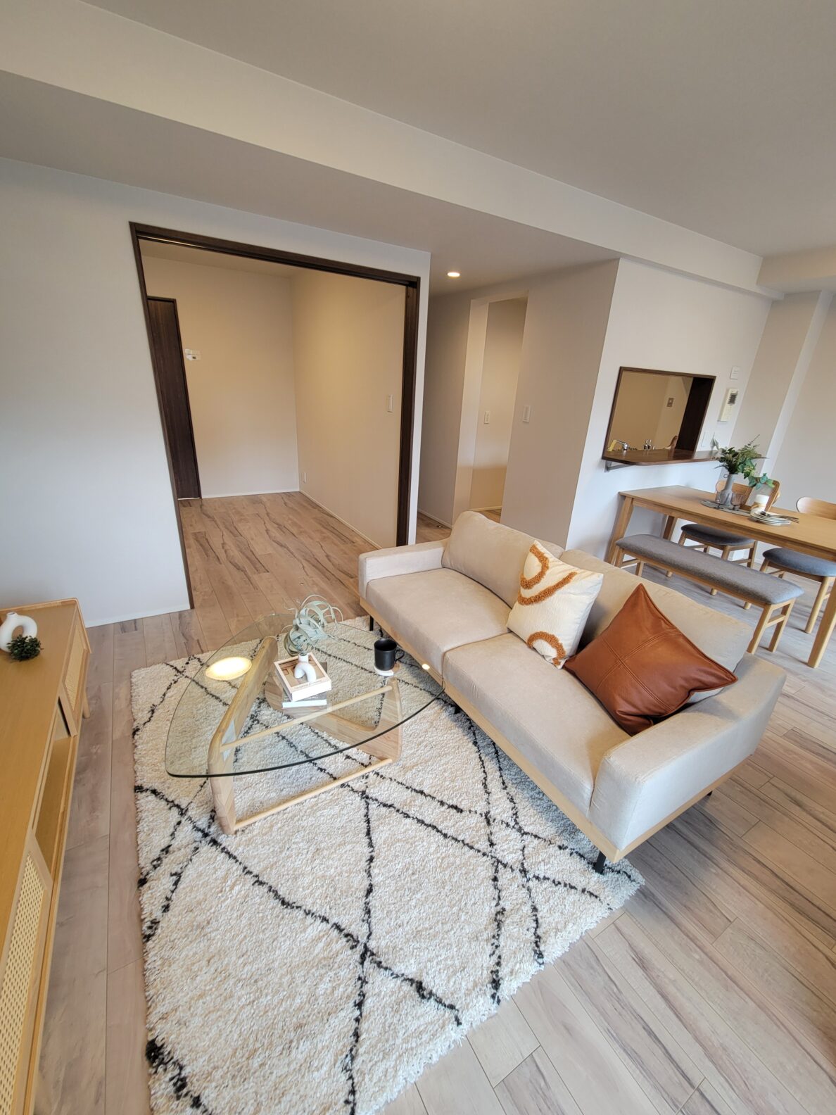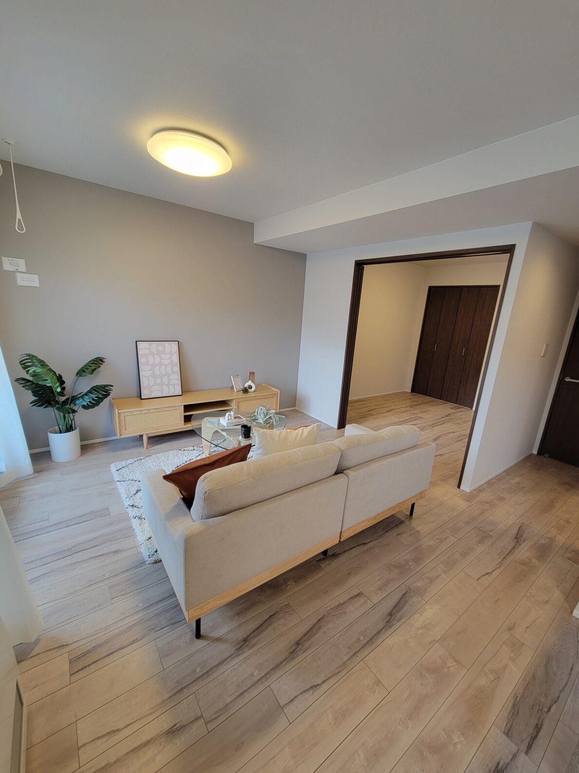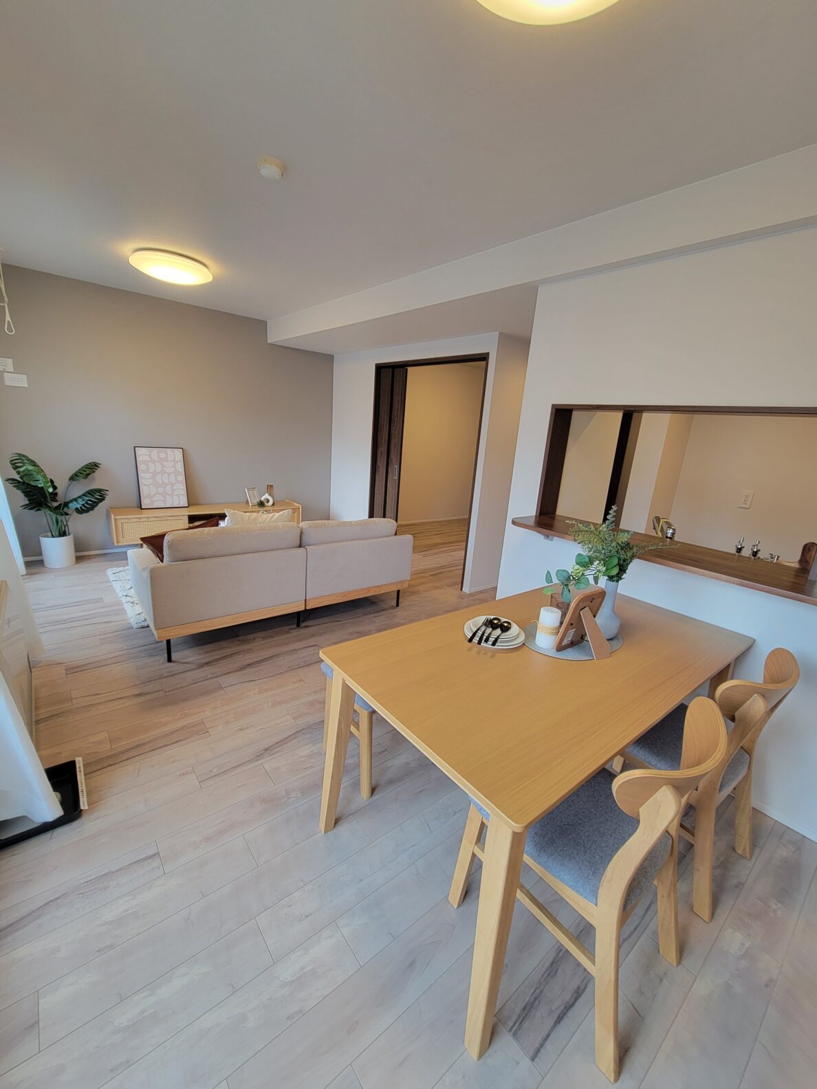 リノベーション済みの室内は快適そのもの!ぬくもりを感じる床や建具の色も素敵です!さらに今回は家具付き販売となっていますので、すぐにマイホームに住み始めたい方にもおすすめ!写真で見たままのおしゃれな雰囲気で新生活を始めましょう!!