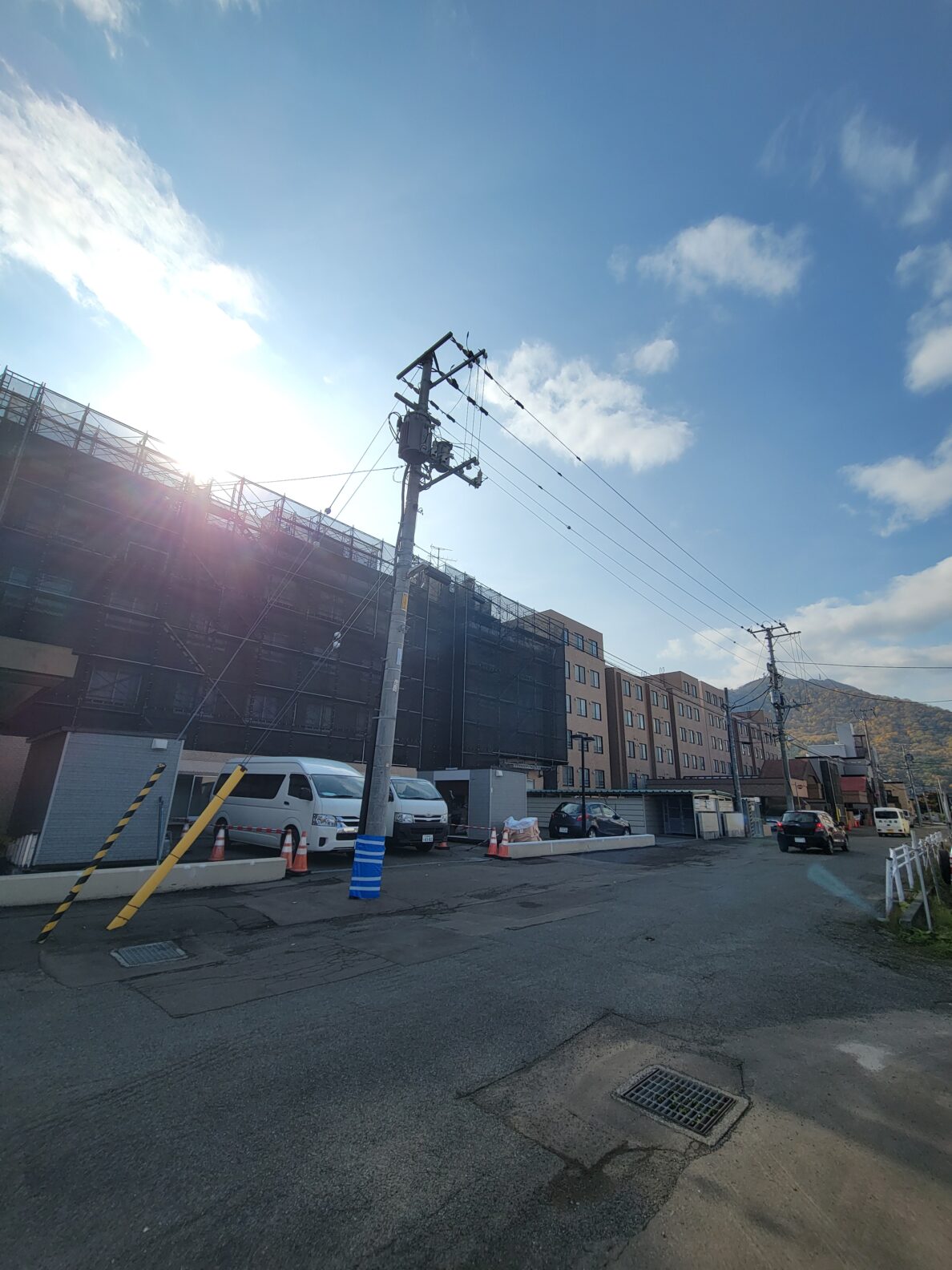 現在、大規模修繕工事中のマンション。購入して住む頃には、美しい外観に生まれ変わっていることでしょう。