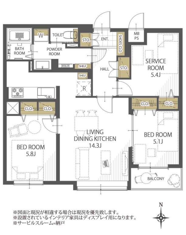 ナチュラルな色味の床や建具で、全体的に明るい雰囲気に仕上がった室内。2LDK表記ですが、5.4帖のサービスルームがあるので実質3LDKとして使える間取り。ペットとも一緒に暮らせるので、藻岩山を眺めながら毎日の散歩も楽しそうですね!!