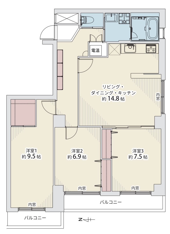 廊下の間接照明やリビングのダウンライトがおしゃれポイントで、さらにウォークインクローゼットや食洗機付きのキッチンなど機能面もしっかりとしています。角部屋なのでお風呂に窓がついているのも◎!