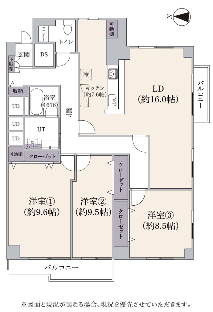 最近めっきり見なくなった125㎡の広さが特徴の、東・南・西の三方角部屋はどの部屋も広さと明るさがあります!マイホームを買うなら広さ・明るさを重視したい方におすすめの物件です!!白を基調とした壁と、グレーのアクセントクロスがクールな印象。キッチンもアクセントクロスとおそろいのグレーが効いていておしゃれ!食洗機と吊戸棚がついている広々キッチンで、お料理が捗りそうです。