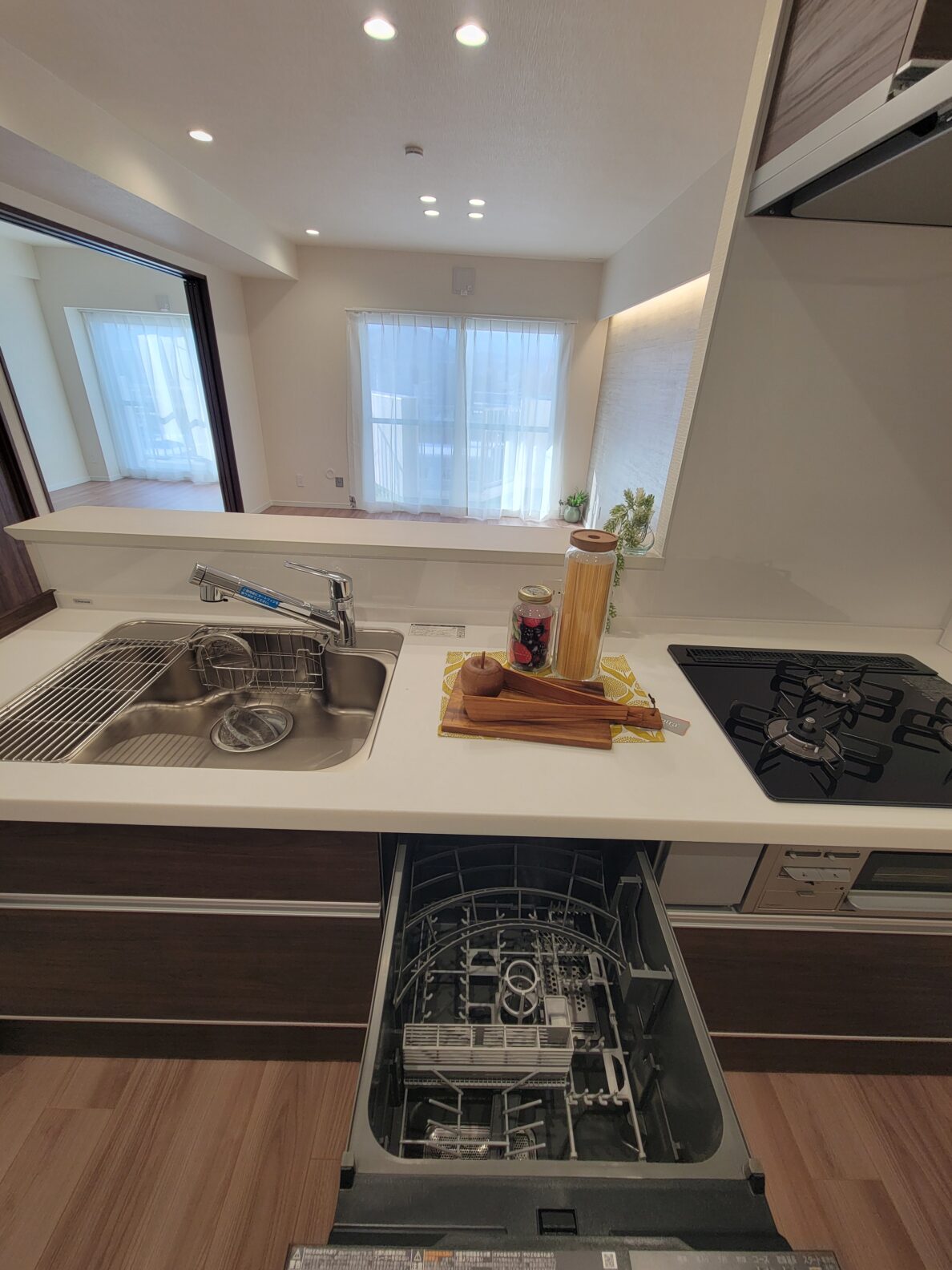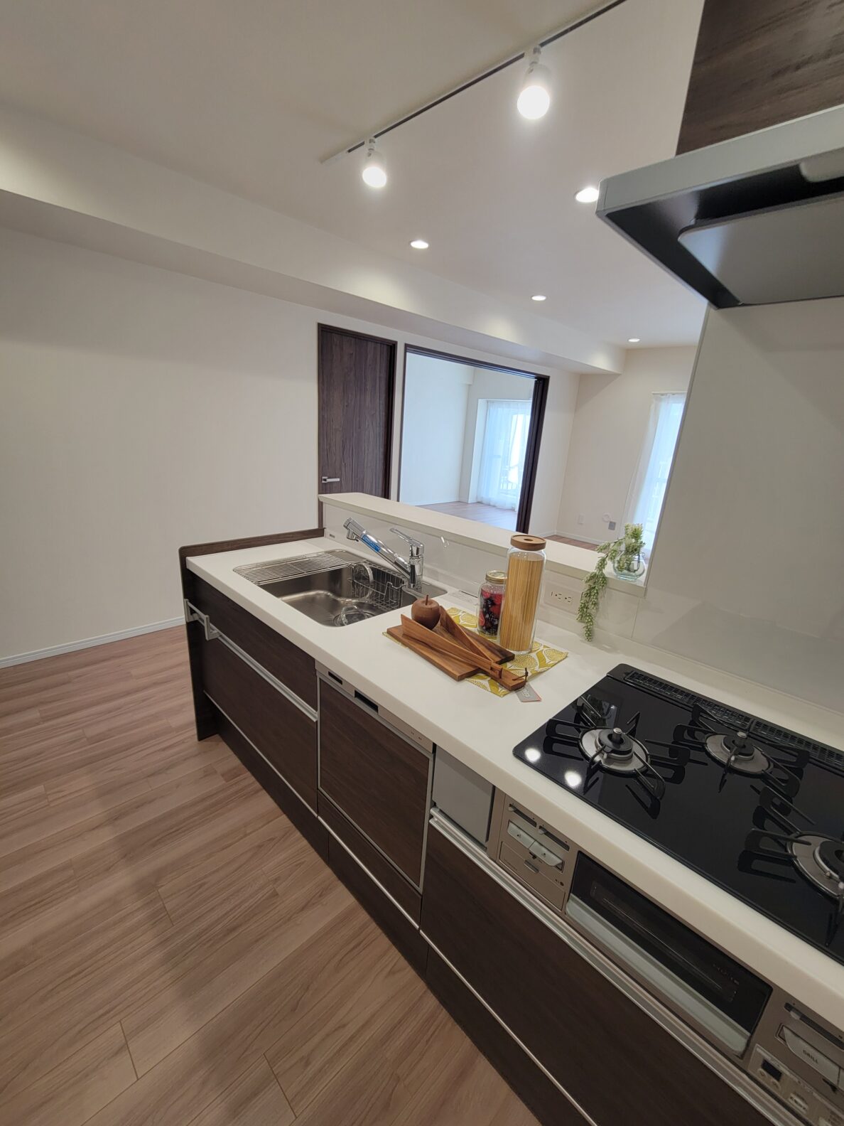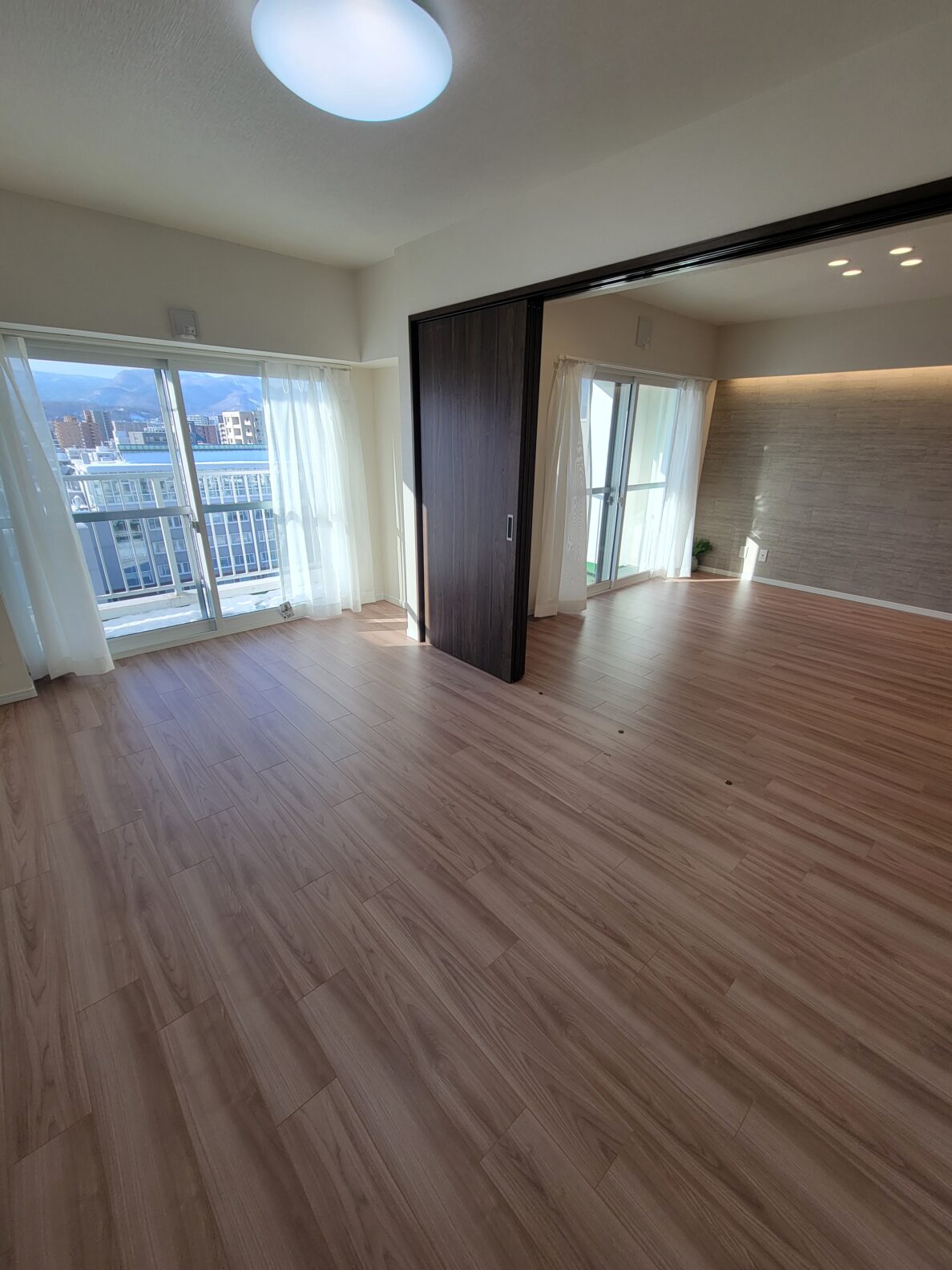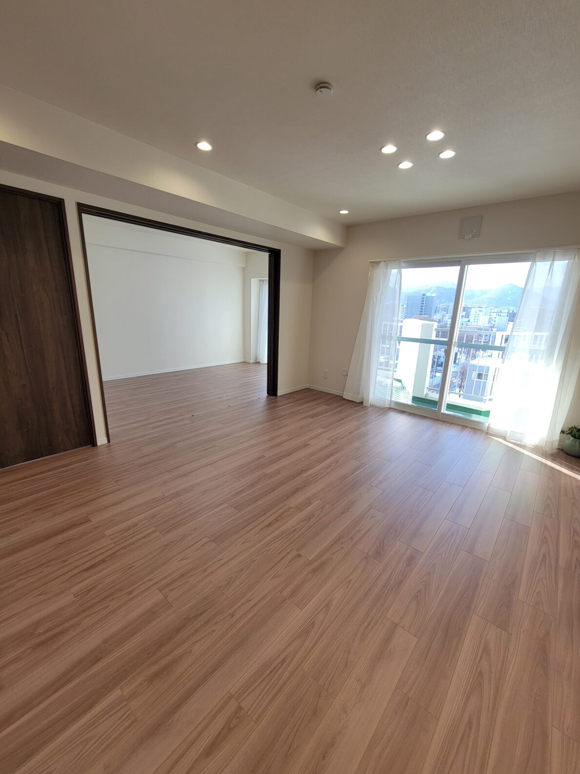 お部屋は92㎡の4LDK。広さと部屋数を重視したい方におすすめ!高層階のリビングからは広い空と山々が眺められて爽快感抜群!!リノベ済みの綺麗な室内には、おしゃれな照明や食洗機付きのキッチンなど見どころがたくさん!