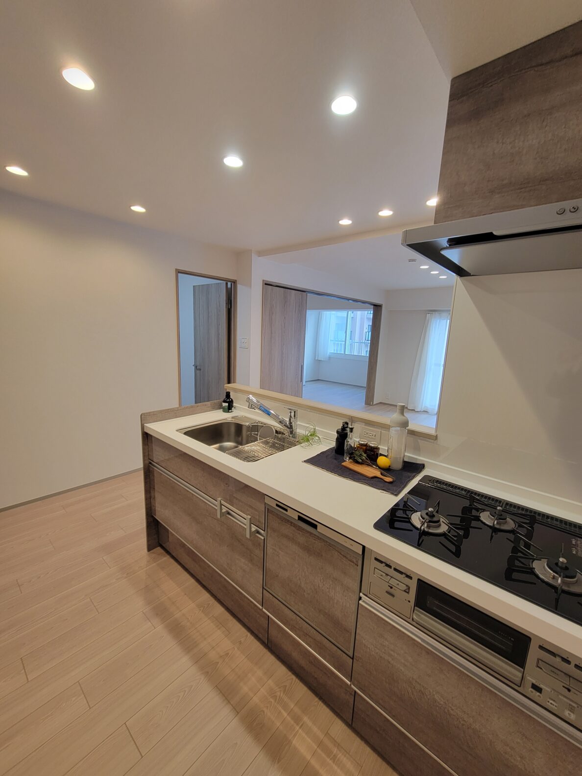 札幌中心部寄りの立地ですが、リビングからは藻岩山を眺めることもできる5階のお部屋。使いやすそうな間取りの3LDKは、リノベーションで過ごしやすい室内に!リビングのダウンライトや食洗機付きのキッチンがポイントです!