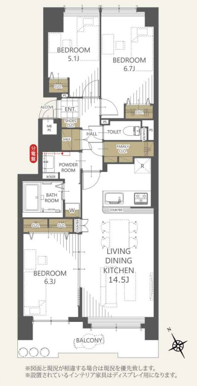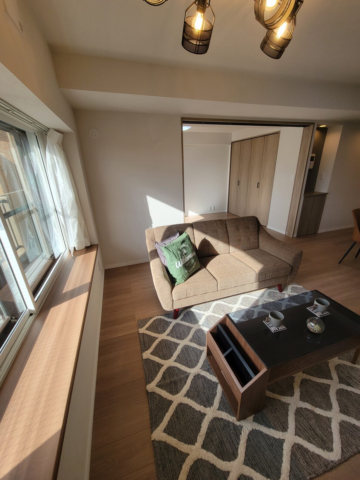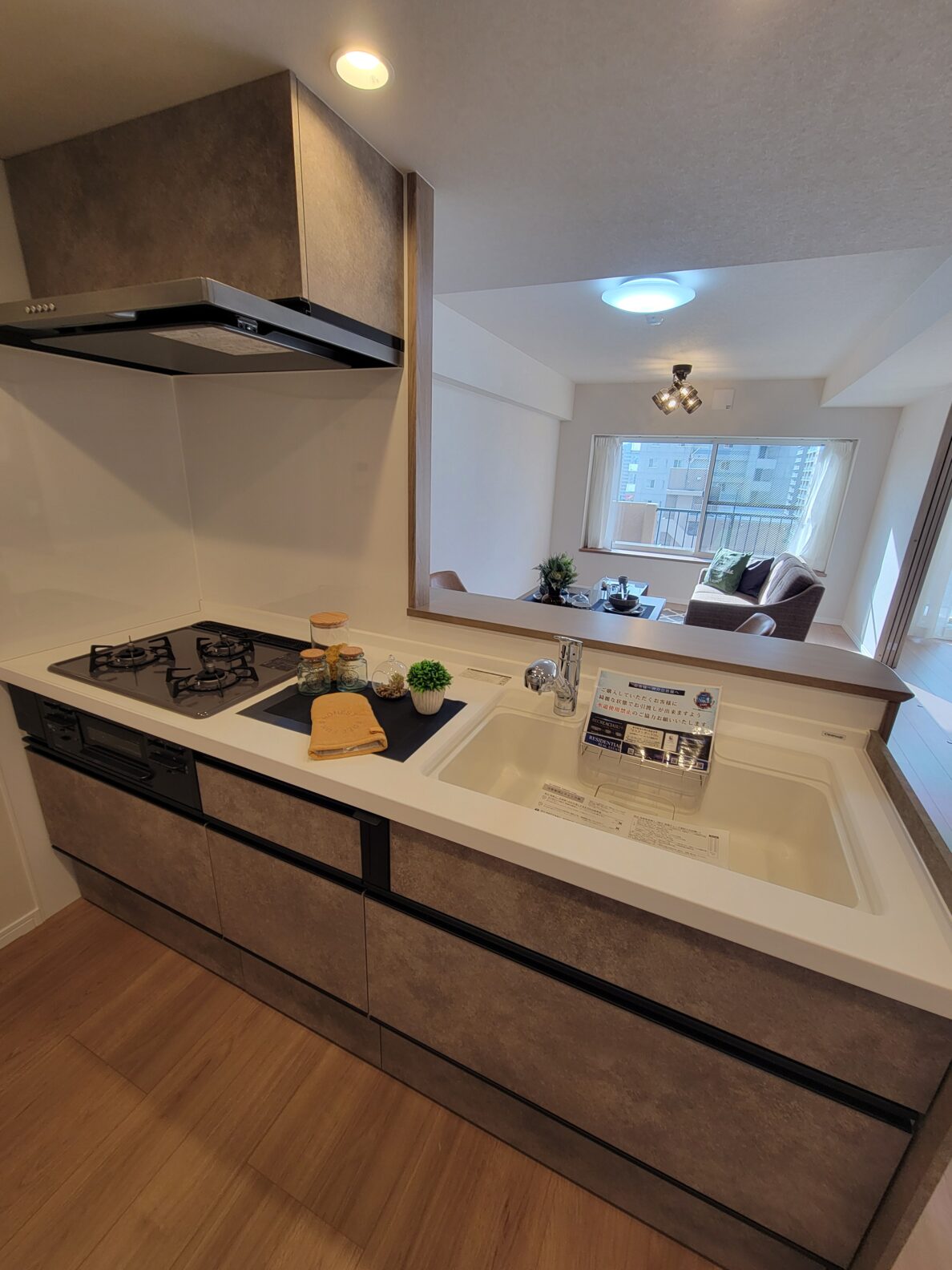 上層階の爽快な眺望とあたたかな陽射しを受けるリビングが特徴の3LDKは、幅広いニーズに応えられるお部屋。開放感のあるオープンキッチンとダイニングセット、窓辺にはソファーを置いてくつろぎの空間を演出できます。それぞれの洋室もしっかりと広さがあり、ファミリークローゼットなど大型収納もあるのでファミリーでも使いやすい!