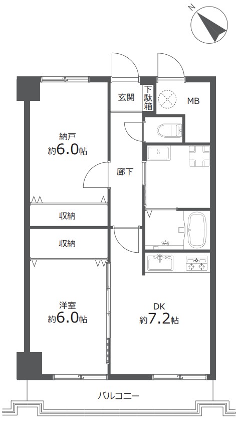 1LDK表記ですが、窓付きで6帖の広さの納戸があるので実質2LDKとして使えます。築は古いですがリノベーション済みなので、新品の設備を使いながら快適に暮らせそう!