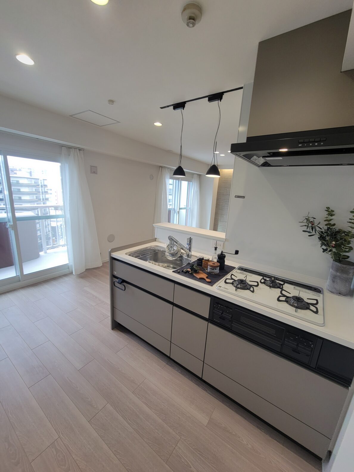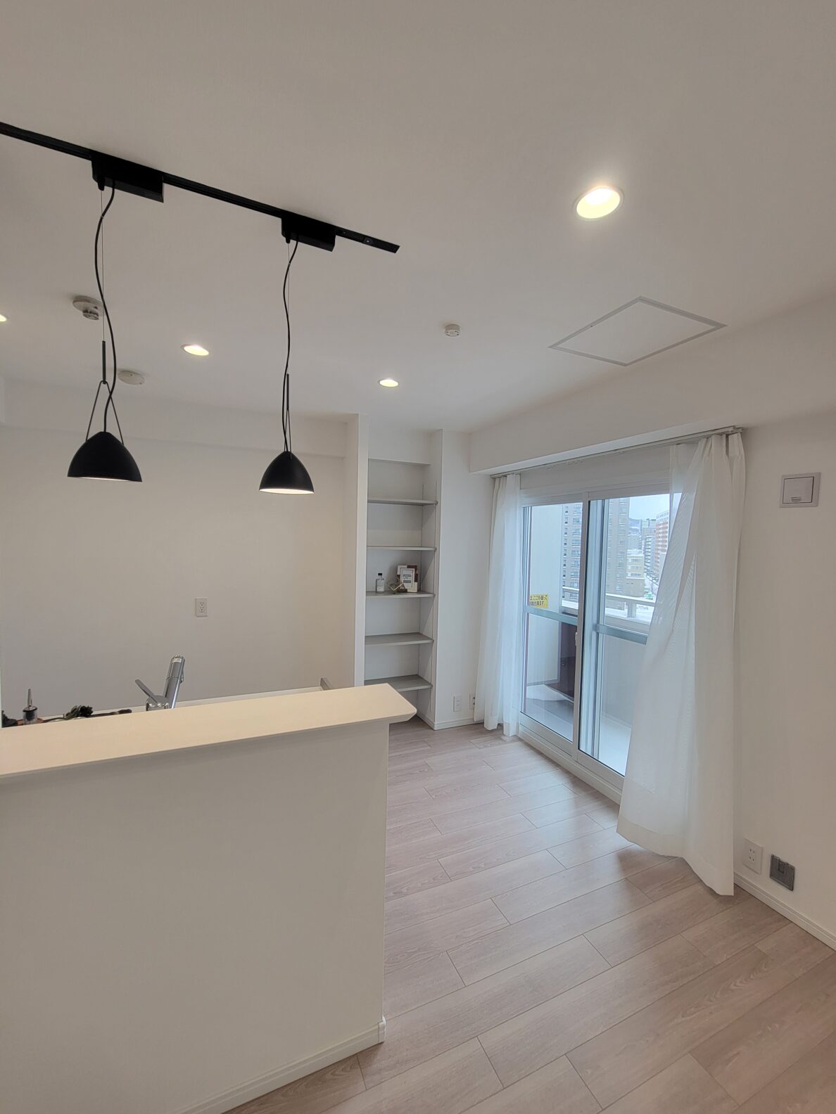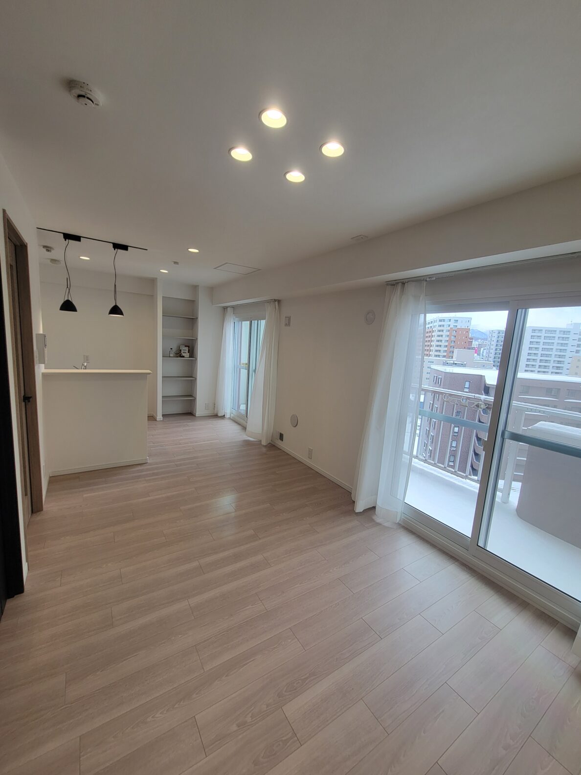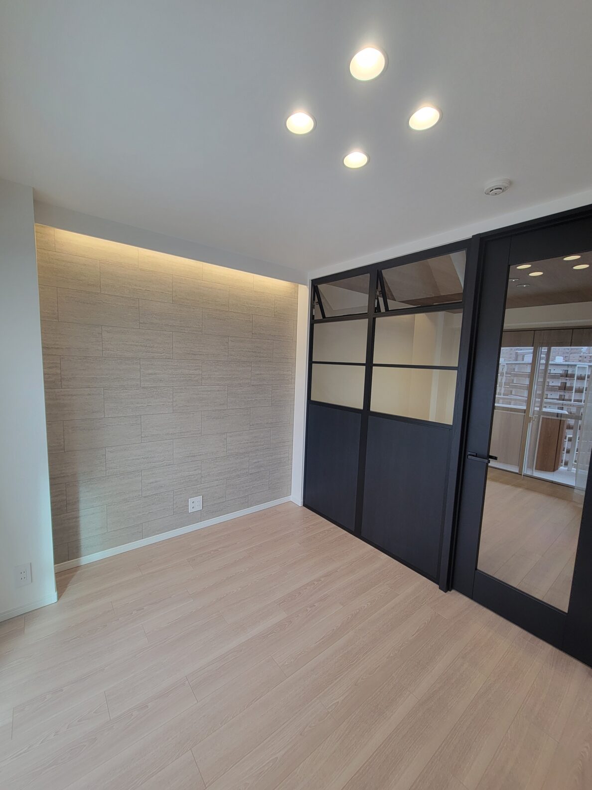 10階西向きのお部屋は高層階の眺望を楽しめて爽快な気分!リビングのダウンライトや間接照明、そしてアクセントクロス。寝室として使える納戸の窓付き仕切りなど、コンパクトながらリノベーションによっておしゃれな空間に生まれ変わりました!