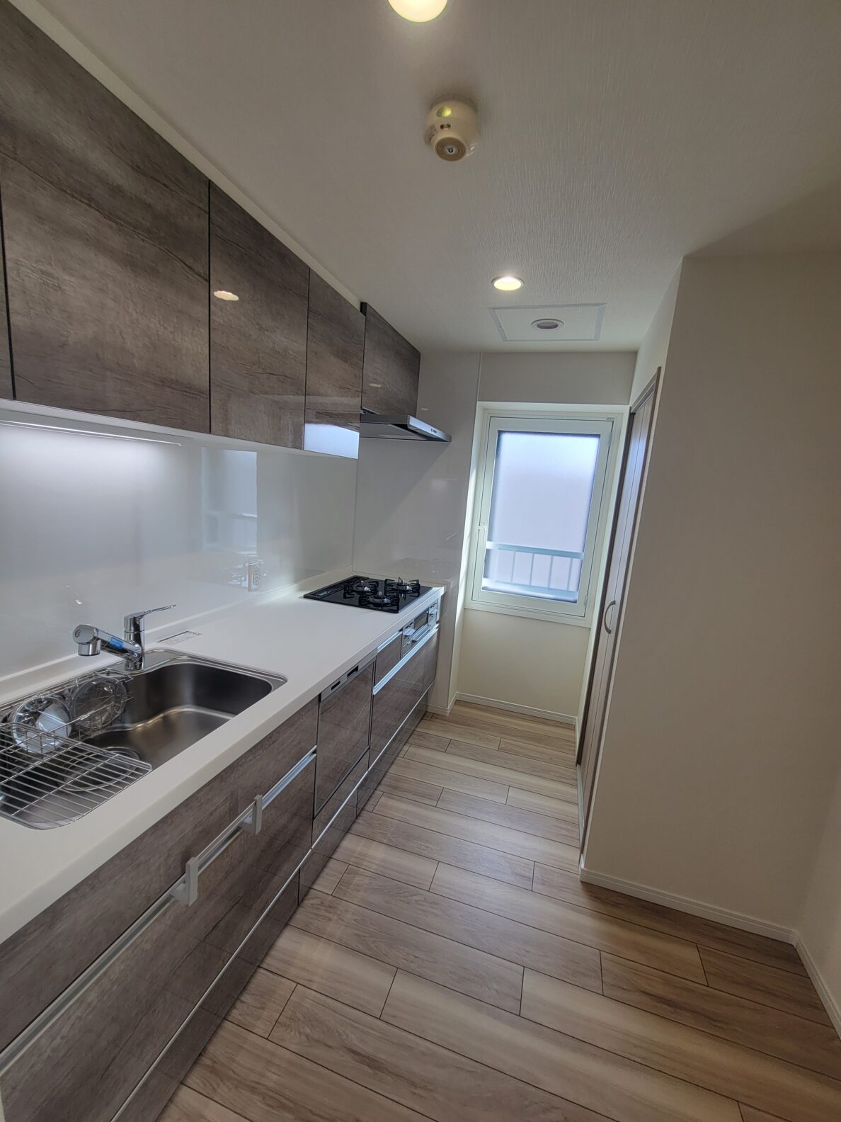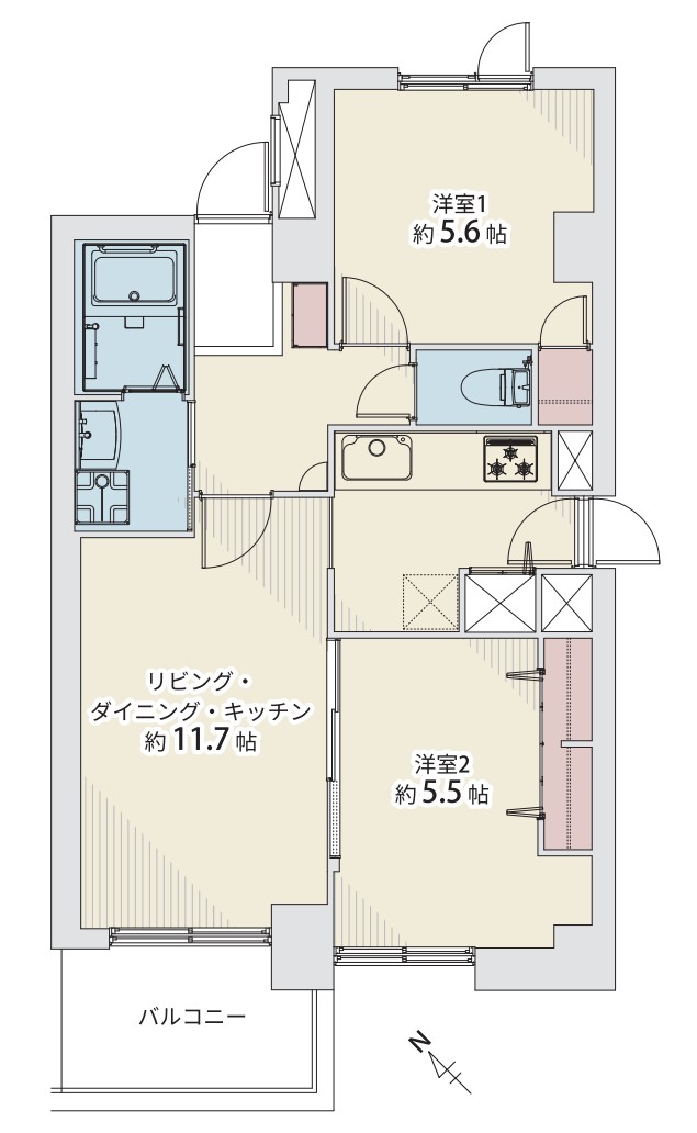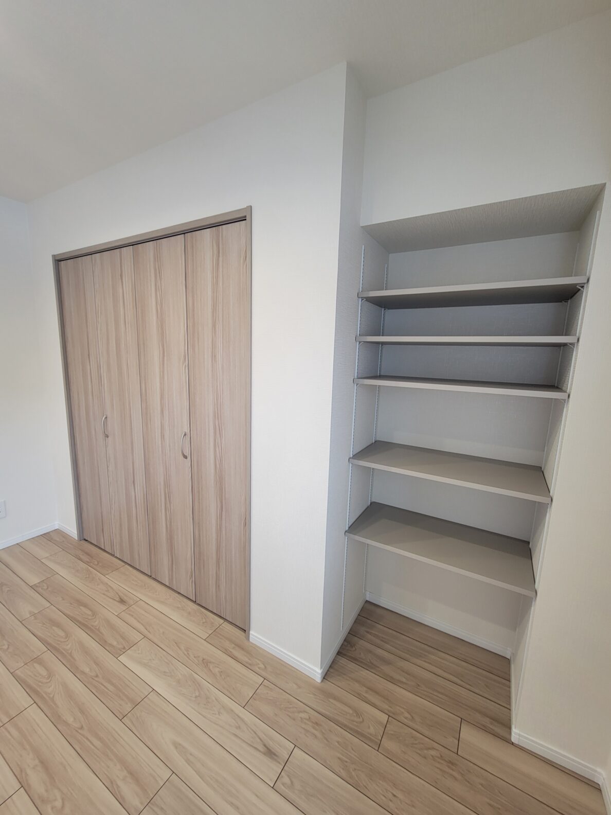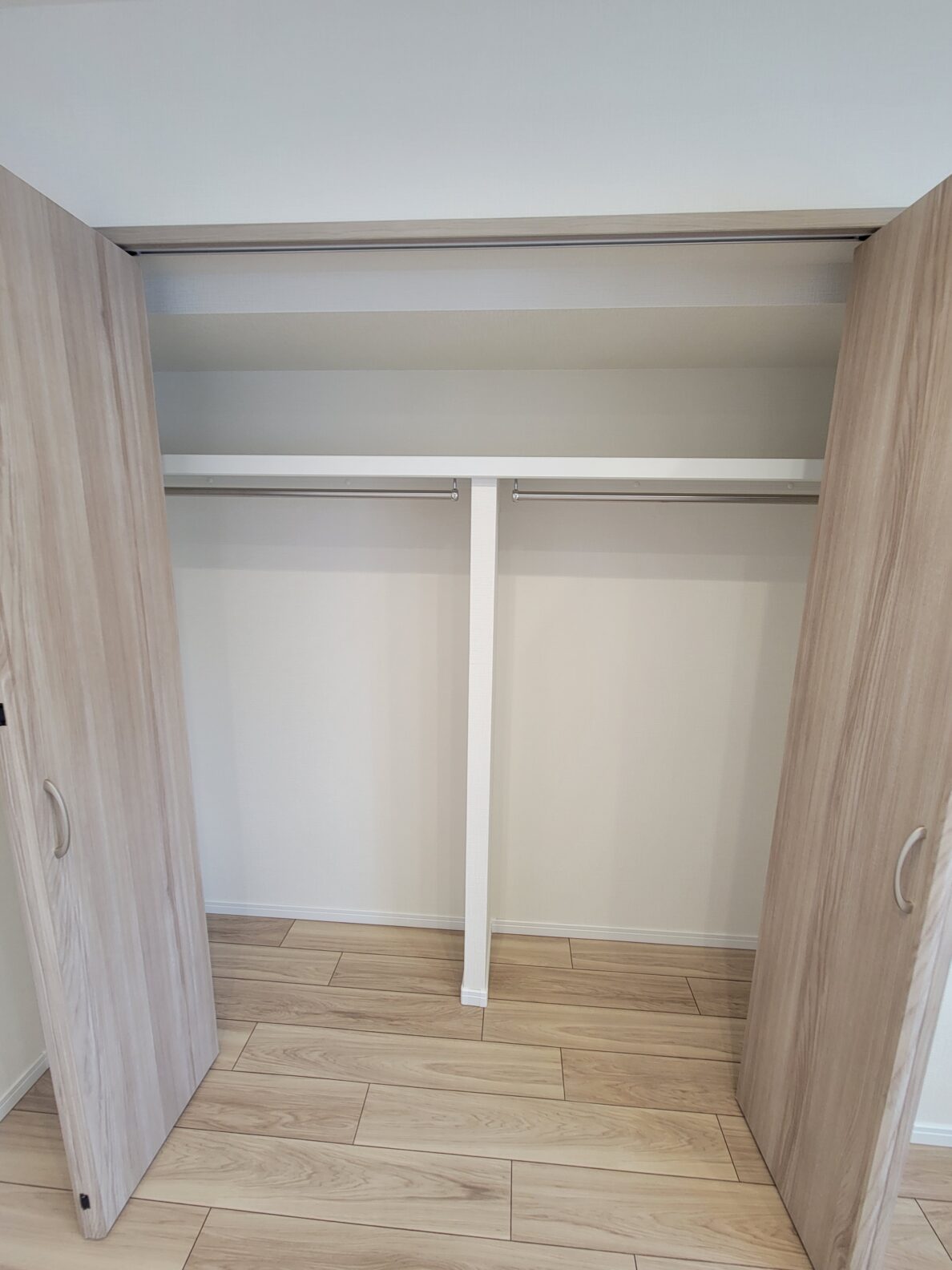 53㎡の2LDKは廊下がコンパクトな分、しっかりとした広さの洋室を2つ作った使いやすい間取り。床・建具・アクセントクロスなどの色味に統一感があって、お部屋のコーディネートも楽しめそう!2階のお部屋ですがリビングからの眺望は遮るものがなく、明るさが確保されているのもうれしいポイント!!