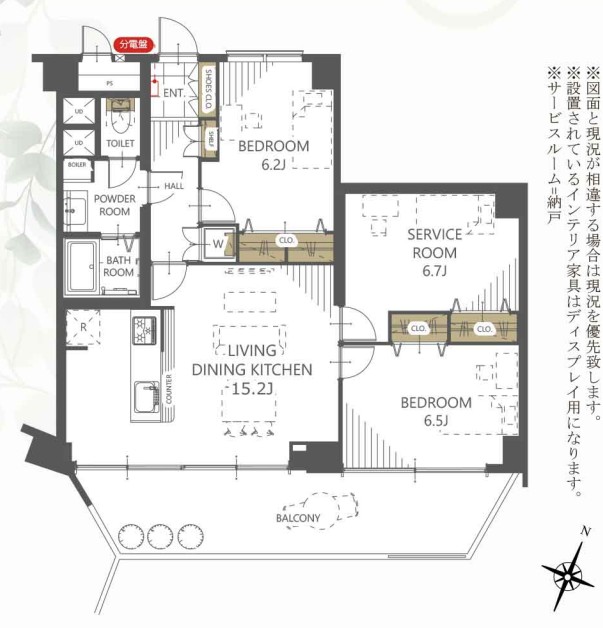 お部屋は大きな通りの反対側の方にある2階の2LDKなので、音に悩まされずに快適に過ごせそうです。6.7帖のサービスルームを一部屋として使えて実質3LDKの間取りは、ファミリーでもゆったり暮らせます!!