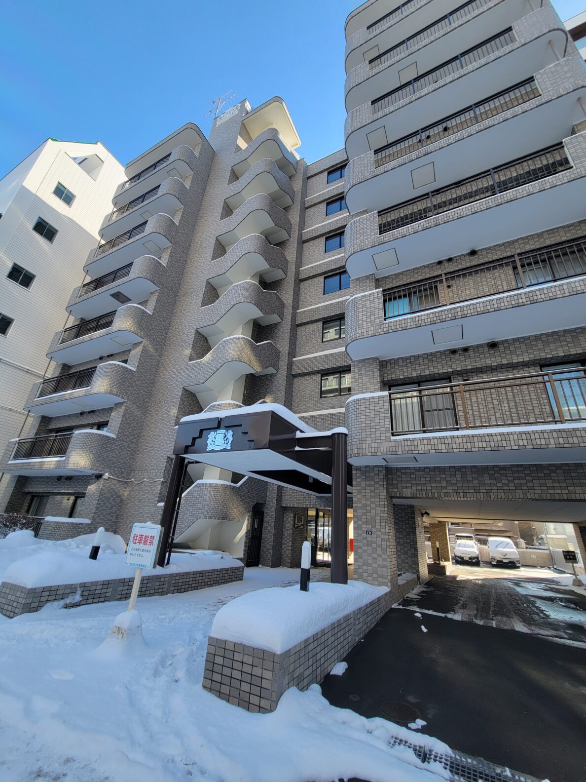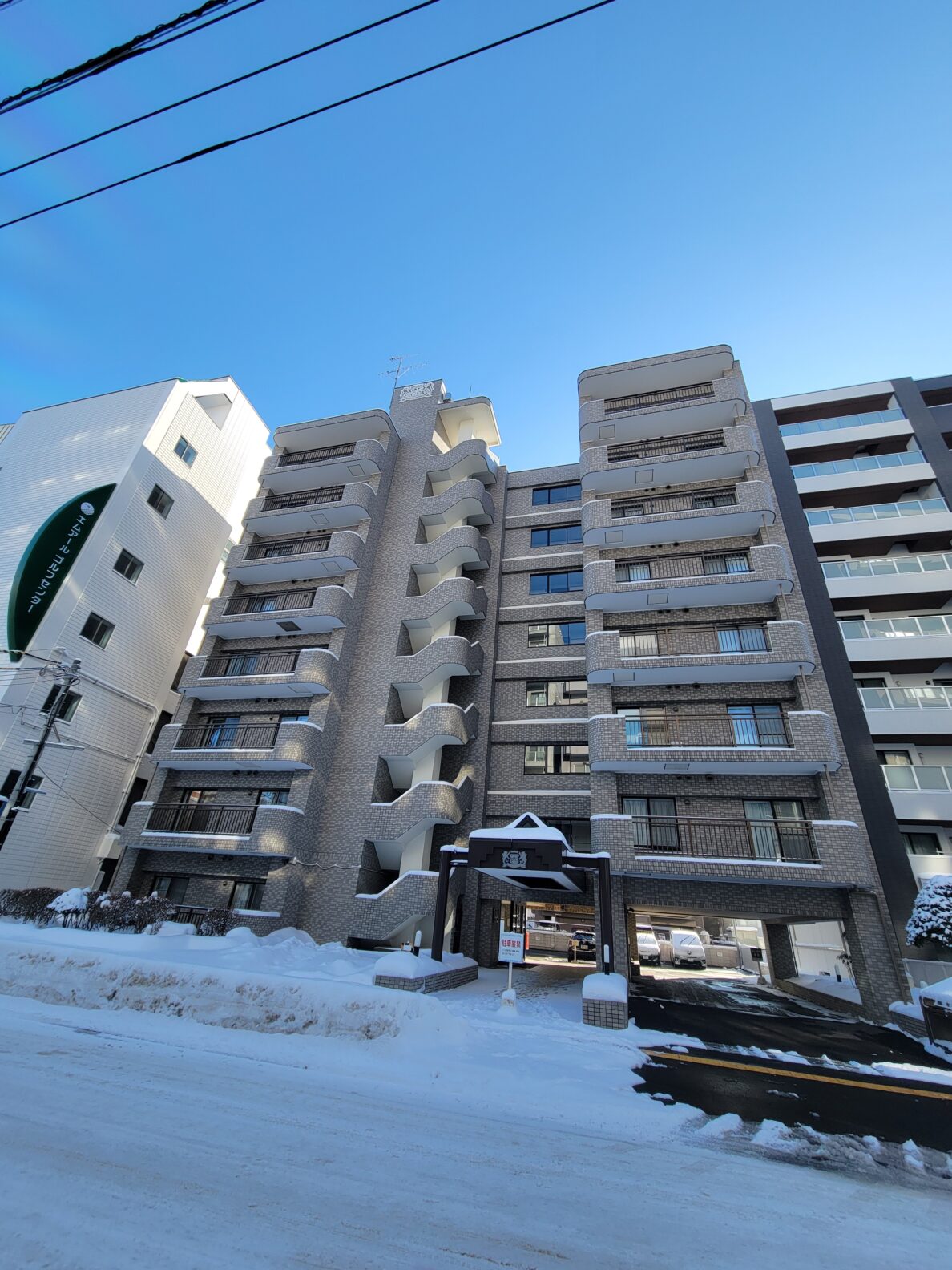地下鉄南北線「北24条」駅徒歩2分の立地に建つマンション。タイル張りが美しい外観は、中古物件でも古さを感じさせません。