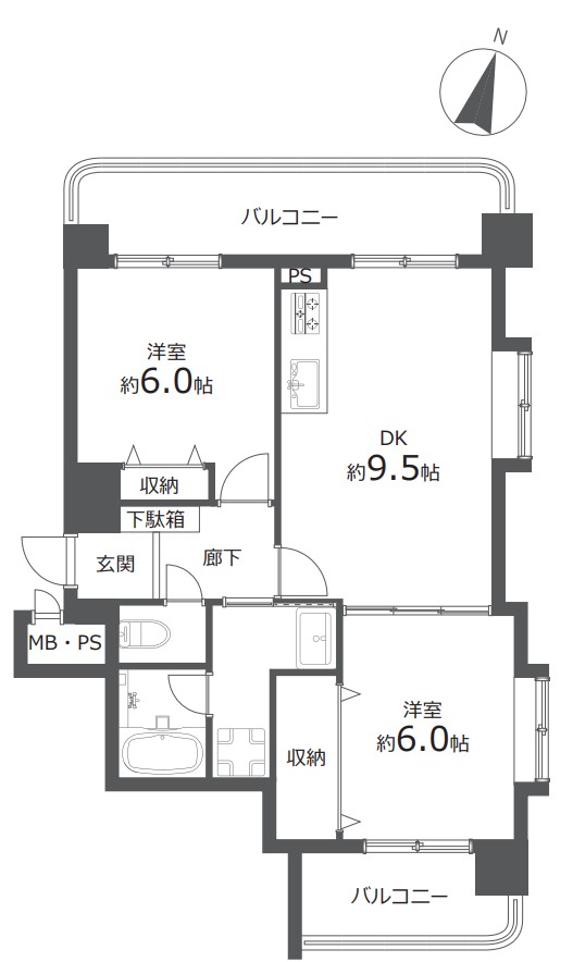 お部屋は三方角部屋の2DK。2面バルコニーや全室に窓がついているため、通風良好でどの部屋も明るく快適です!コンパクトなのでセカンドハウスとしても重宝しそう!