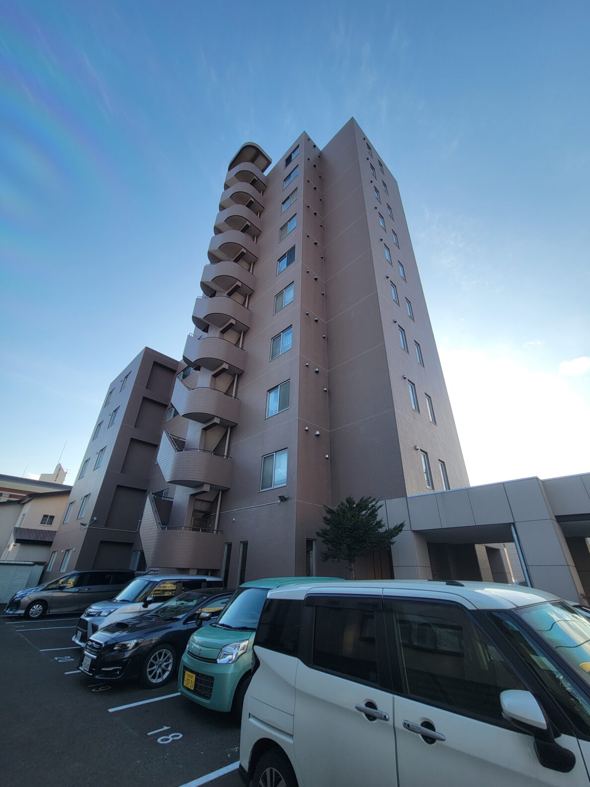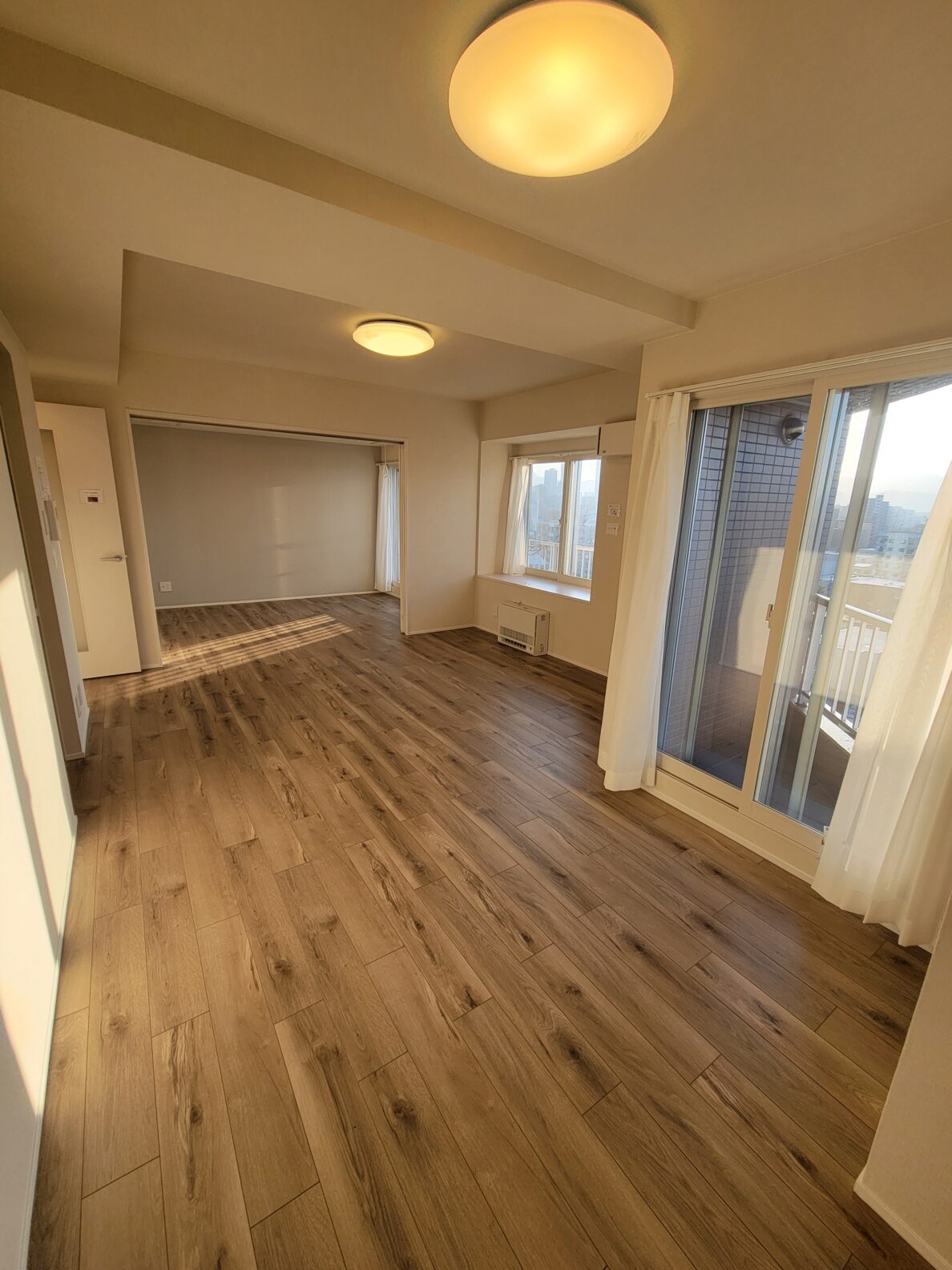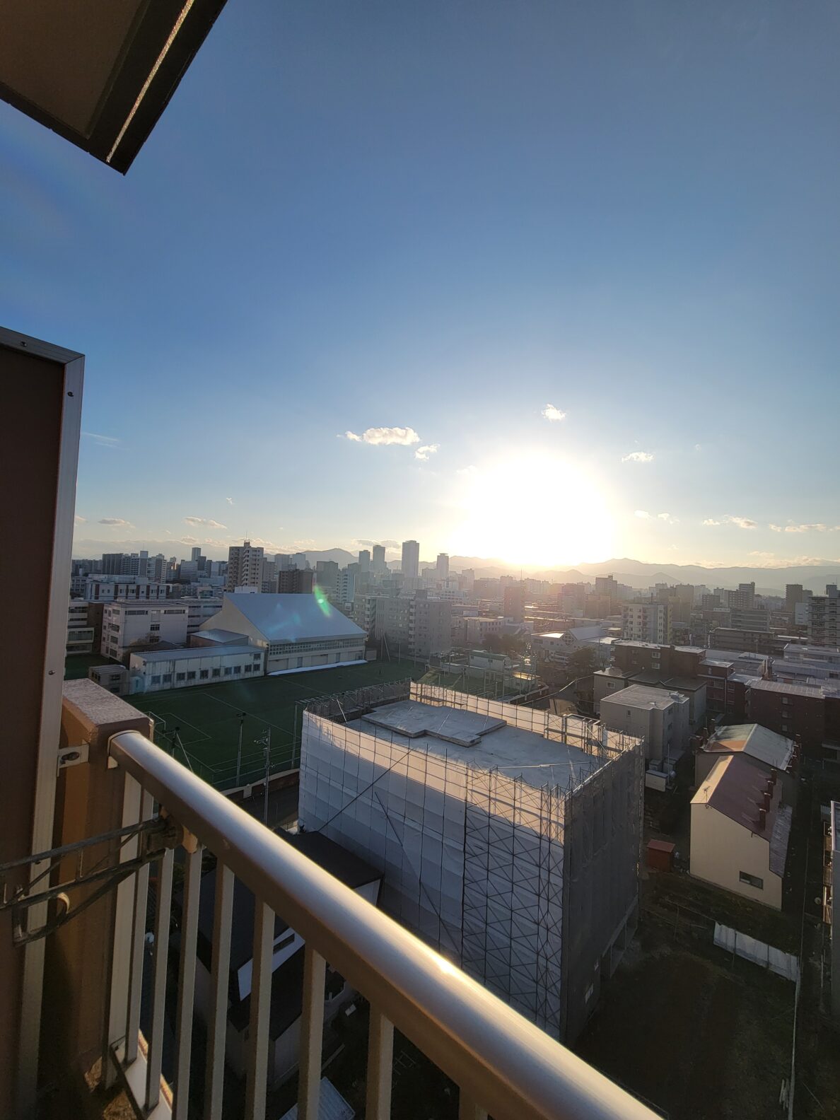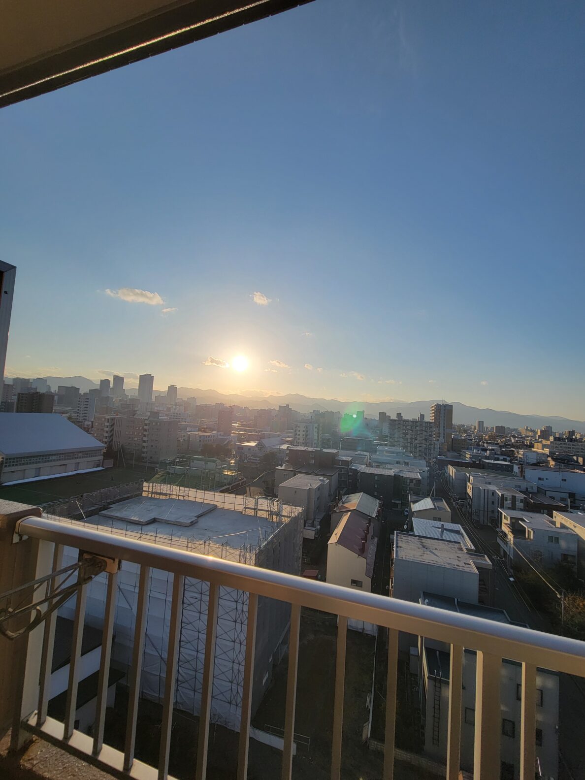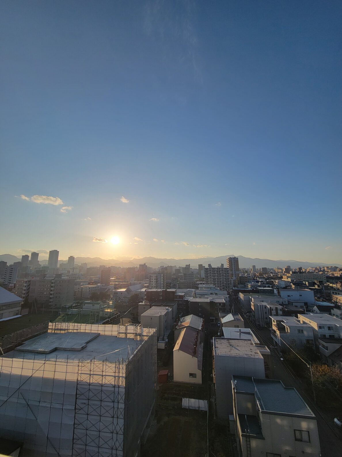 三方角部屋の最上階から眺める夕日は格別!札幌中心部のビル街と、その奥に見える山々、そして広い空!これぞザ・札幌という眺望!!