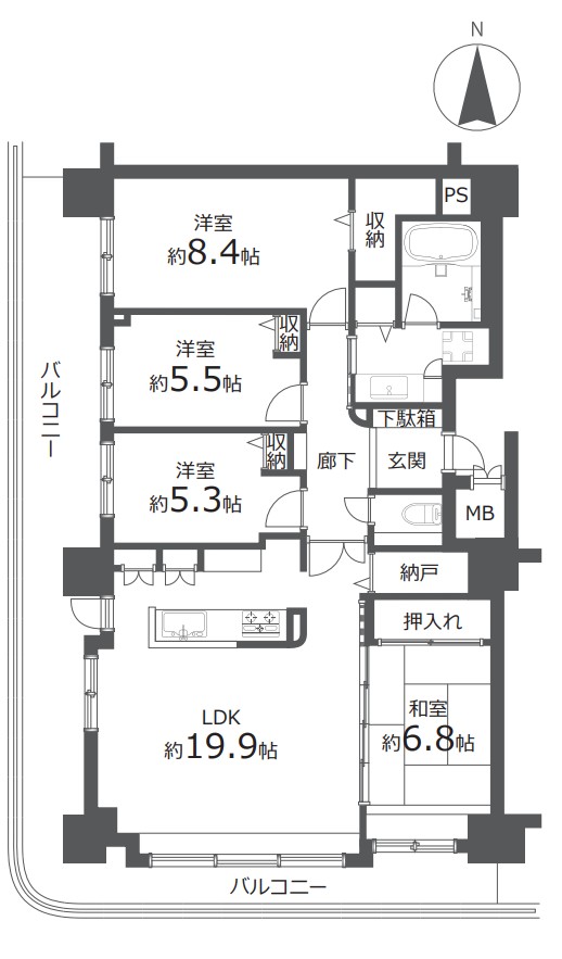 外観はまだまだ新しさを感じさせる綺麗な建物。お部屋は南西角部屋の105㎡!L字型のバルコニーで全室明るく、ファミリーでもゆったりと暮らせるお部屋です!!南向きの明るいリビングには開放感のあるアイランドキッチンが。作り付けの食器棚と大きなパントリーもあって収納力抜群!食洗機とIHクッキングヒーター付きの便利さがうれしいパーフェクトなキッチンです!お風呂や洗面台も広々で使いやすい!!